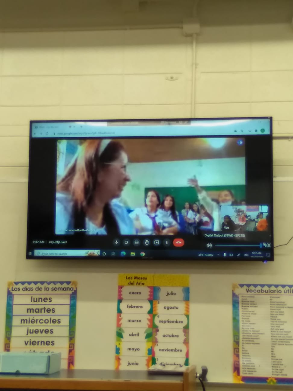 Esto gracias a los docentes Mirella Bonilla, Gleiber Martinez y Jose Alexander Arcila, en Colombia y Richard Iglesias y Suzanne Baum, en EE.UU., quienes coordinan encuentros virtuales en los que se comparten aspectos culturales propios de ambos países por medio de la práctica y uso de la lengua extranjera que se está aprendiendo en cada escuela y país respectivamente.