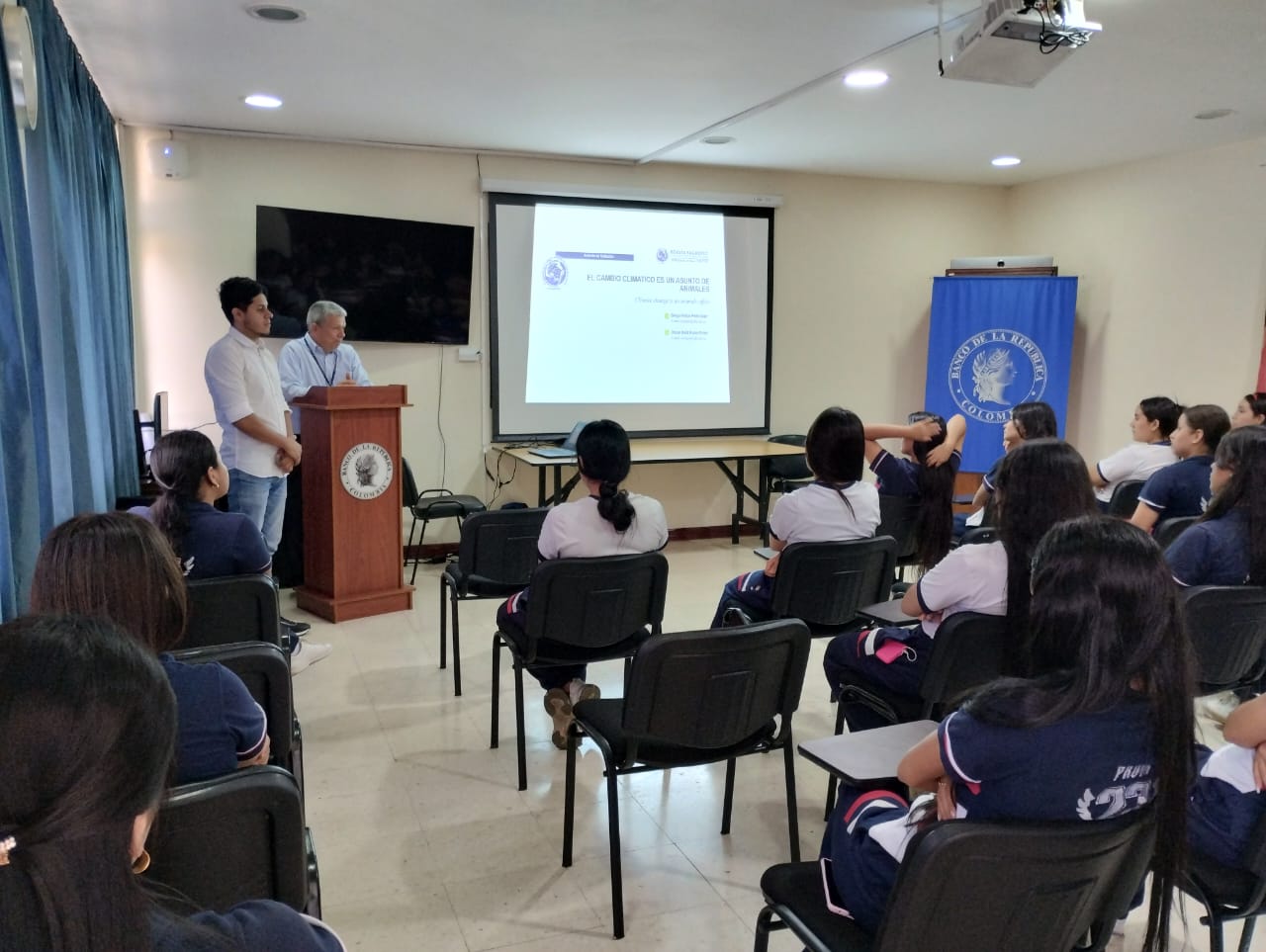 Durante el día de ayer, miércoles 08 de noviembre, las estudiantes del grado 11C de la IE Sagrados Corazones junto con la docente Diana Catalina López, estuvieron en la Biblioteca del Banco de la Repúblicat participando de un Taller para trató temas en torno al Cambio Climático. Esta es una de las mayores emergencias a nivel global que demanda replantear el desarrollo del sector agropecuario priorizando la preservación de los recursos naturales, y así se mitigue el efecto invernadero. Indicó el Señor Ricardo Jiménez, Gerente de la Agencia Cultural de Florencia.